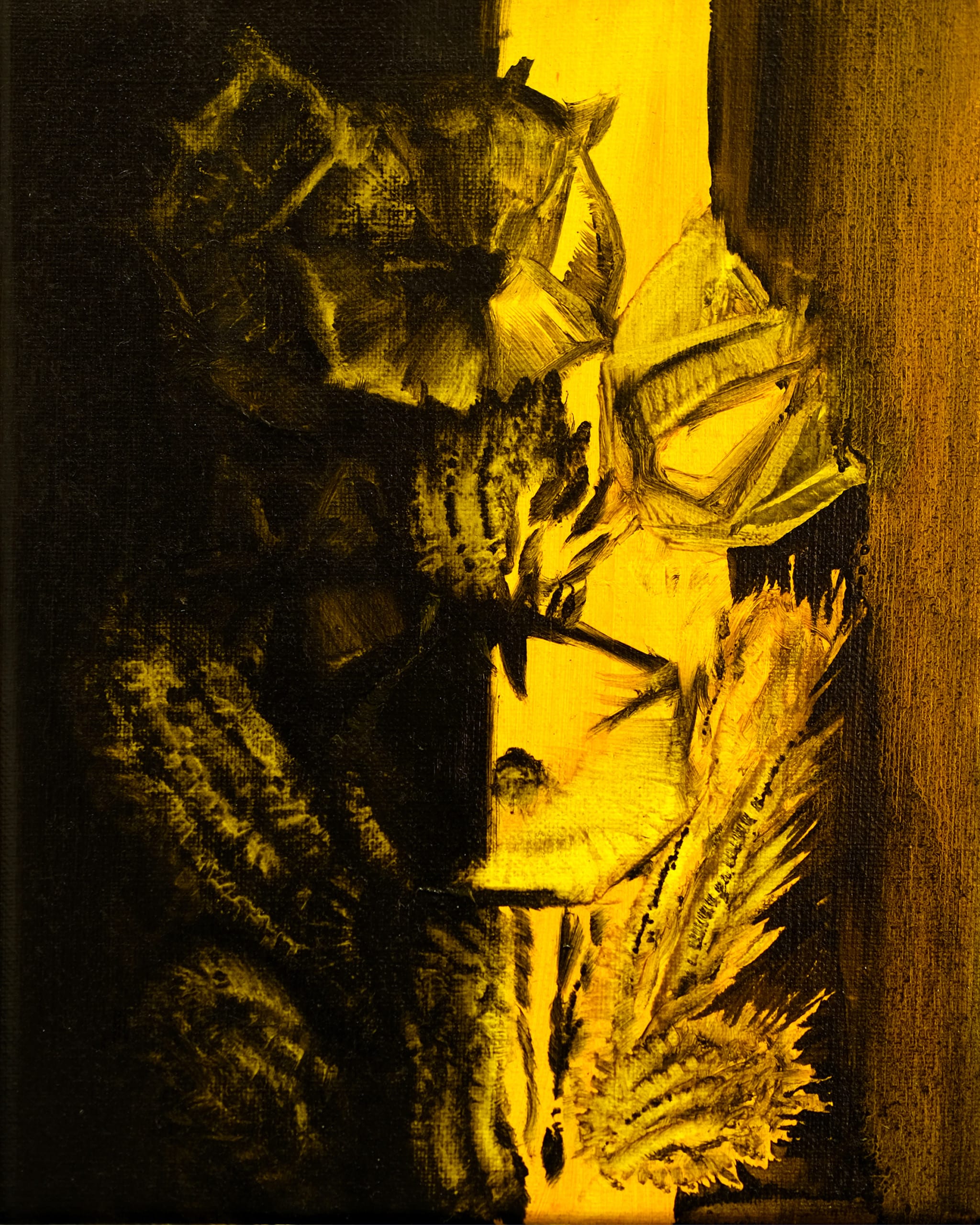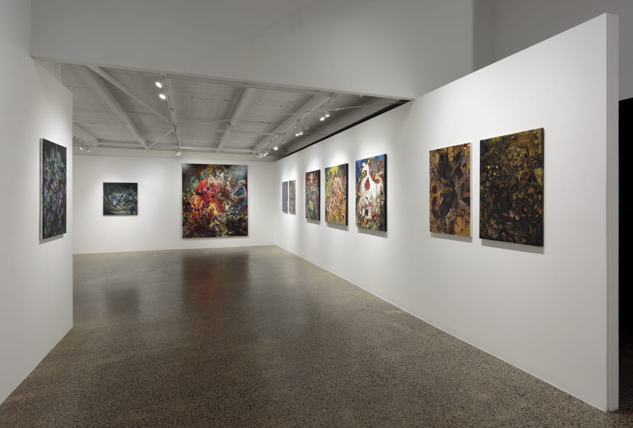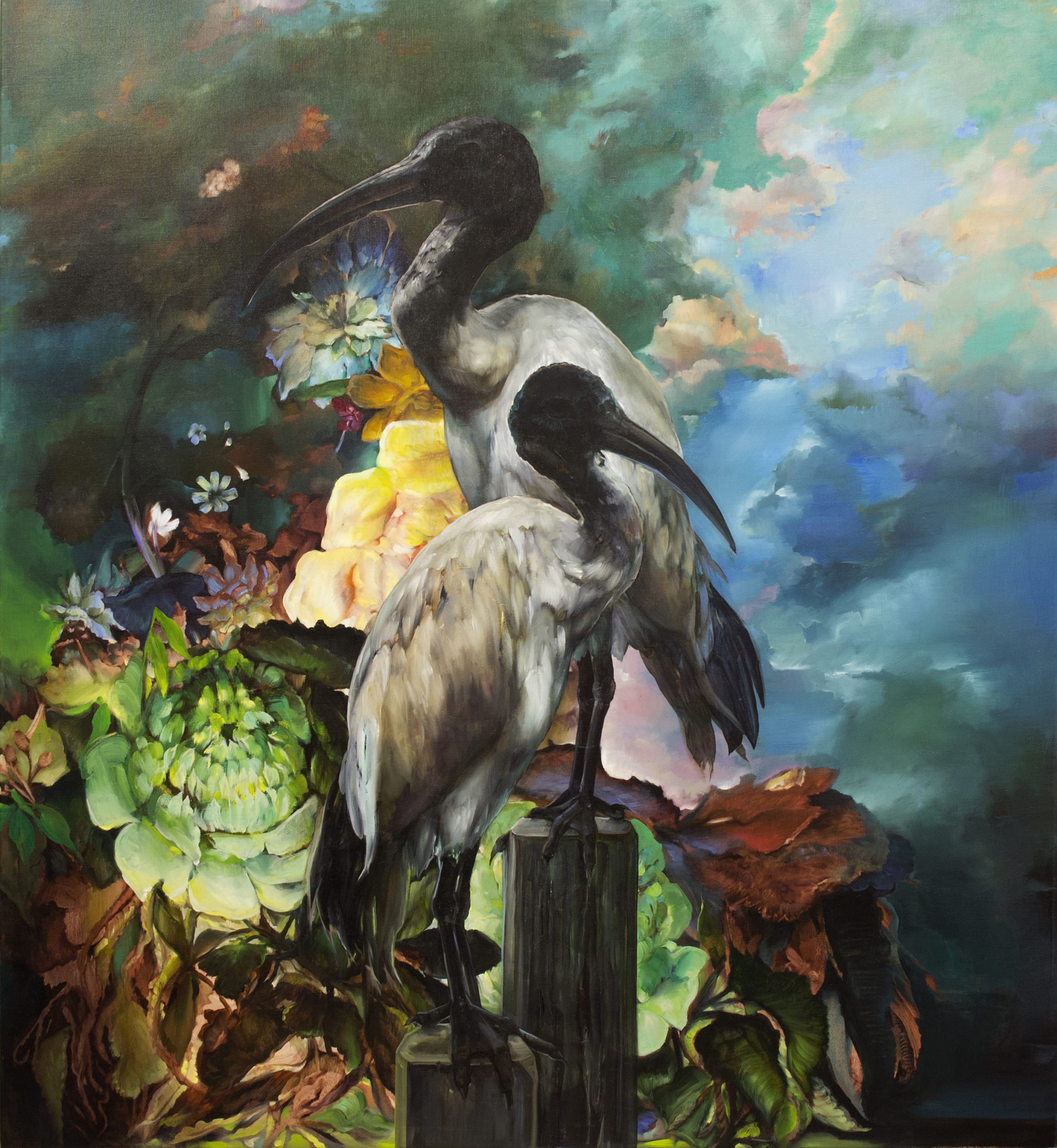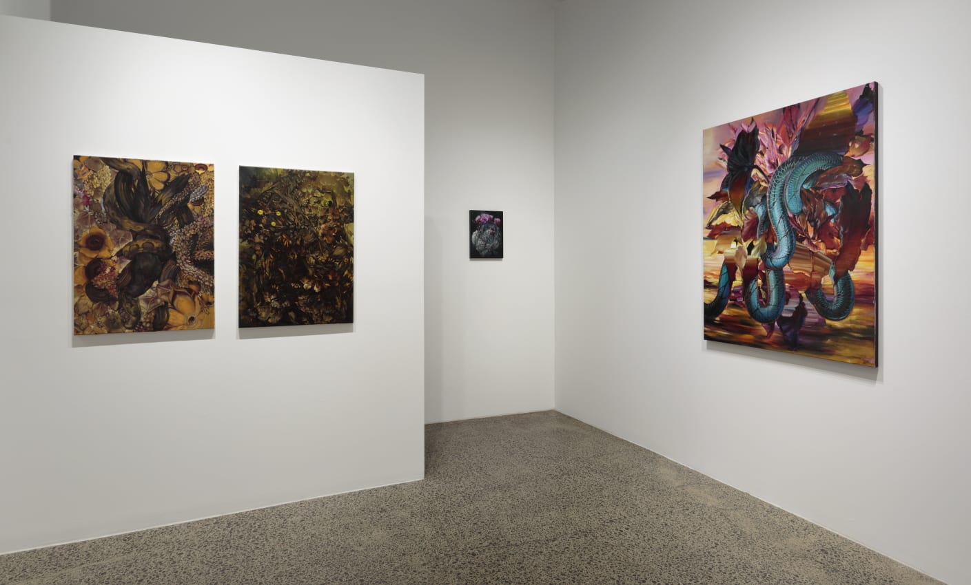 Here I paint complex entanglements of multi-genus flora in hyper-natural, Post-Humanist scenes. In reimagined ecosystems non-human subjects are presented as heroic and embodied with agency. Conflating laws of time, biology and chemistry, these non-human protagonists display a potential for infinite adaptation, mutation and hybridity. They blend existing and fantastical botanical species within landscapes unsettled by the forces of eerie weather phenomena. Picture the convergence of desert and oceanic landscapes, tidal expanses and alpine summits, all overgrowing the remnants of a bygone anthropocentric world. In their place, new organic monuments rise.