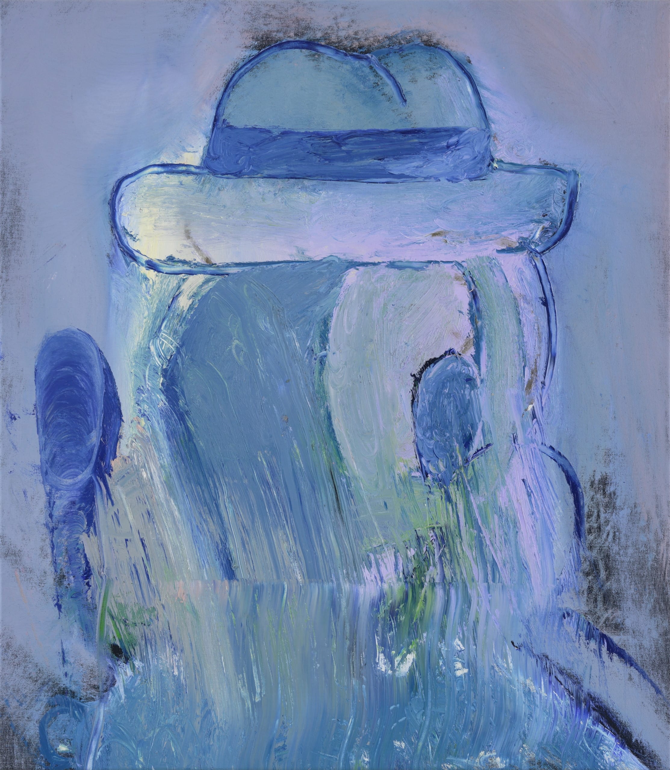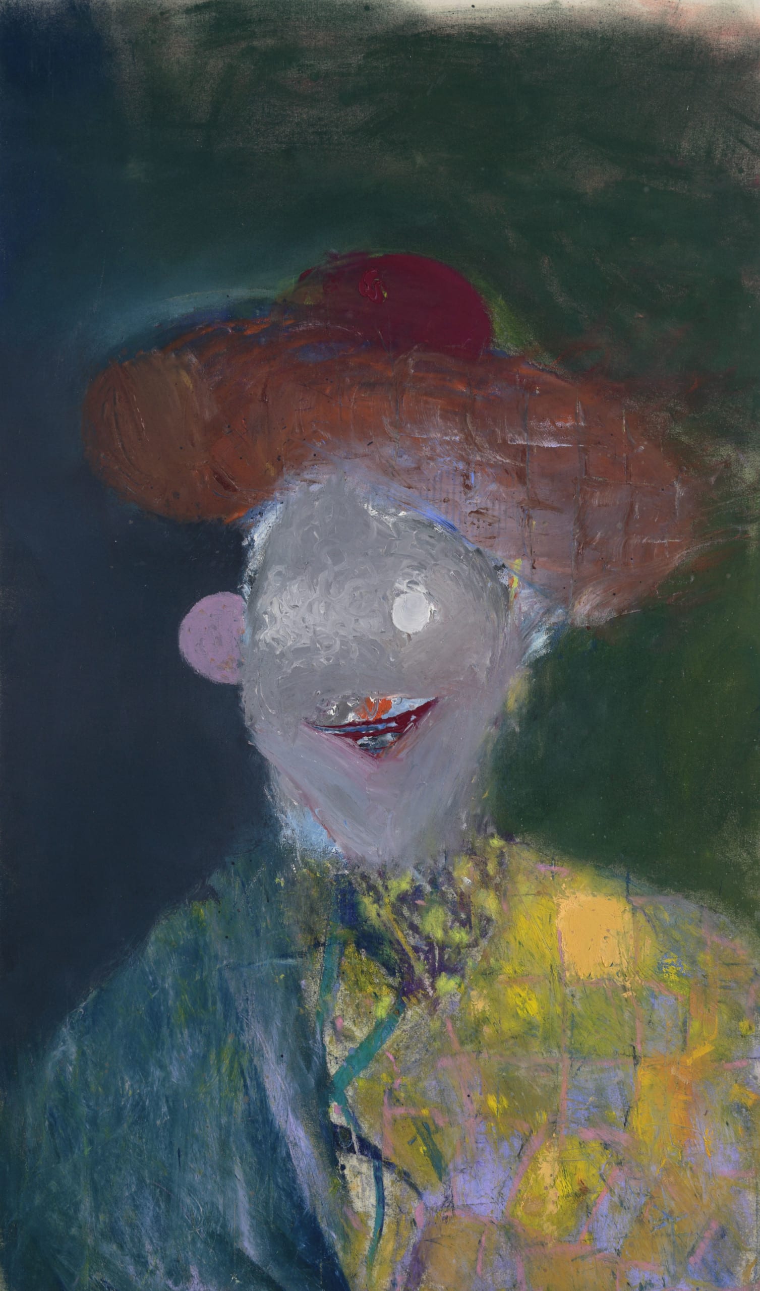 Queensland College of Art graduate Rhys Lee’s latest exhibition at Nicholas Thompson Gallery follows on from a sprawling exhibition he staged there in 2017, entitled 10 Paintings and 100 Drawings. This 2018 iteration is considerably smaller in scale. Whistle Work is made up of only nine medium to large paintings, but it takes off from where the artist left off. Lee is a prolific painter; his works might loosely be described as portraiture but they’re not really like any portraiture you have seen before. They nearly always include a face or the suggestion of a face; according to Thompson, “Lee considers this as almost a type of self-portraiture.” Most recently he has been painting images of psychotic poodles, all bulging eyes and maniacal, bared teeth. They offer a kind of perverted beauty: pampered animals rendered grotesque and mad. Weird too, they hold your gaze.
