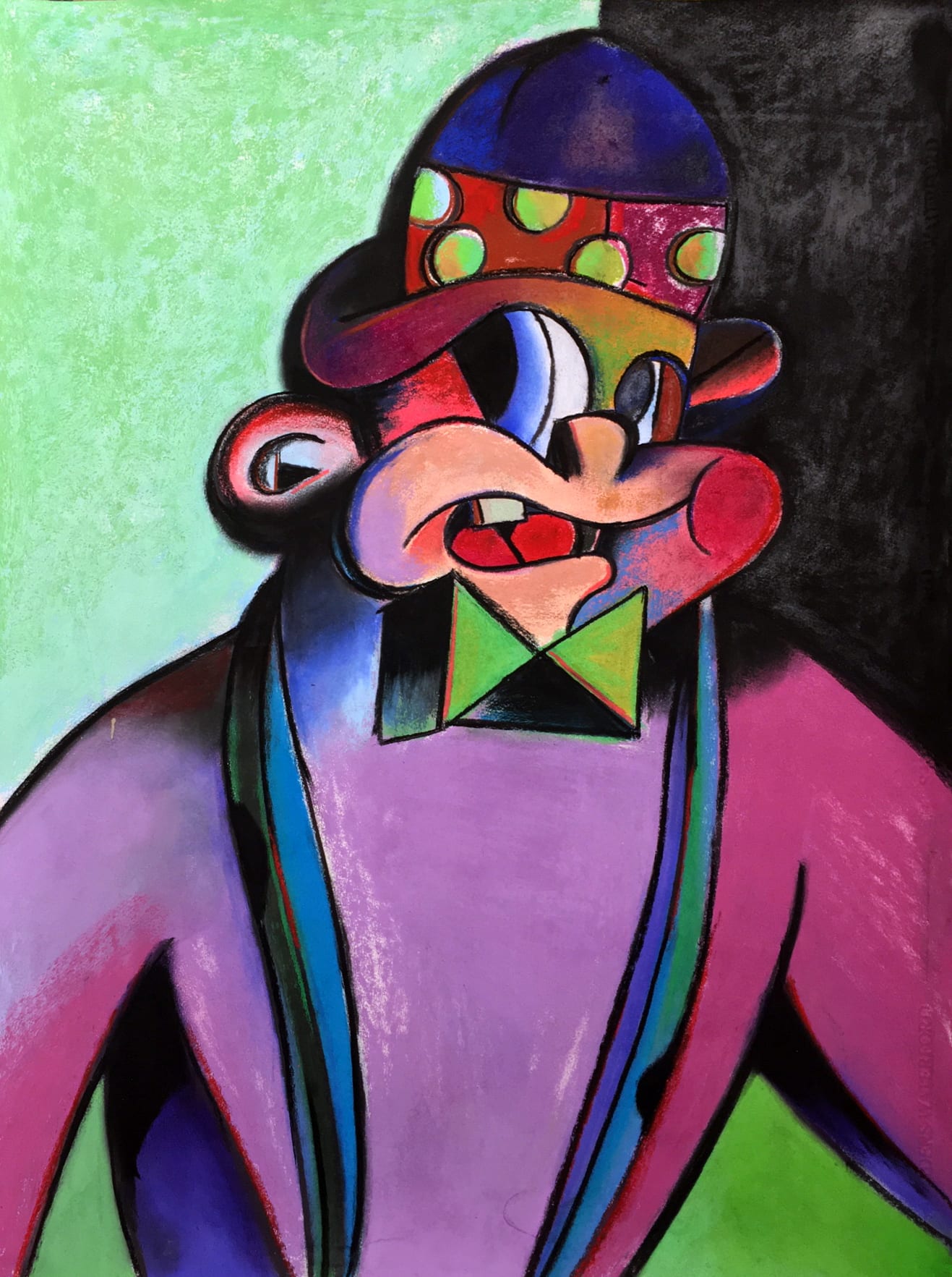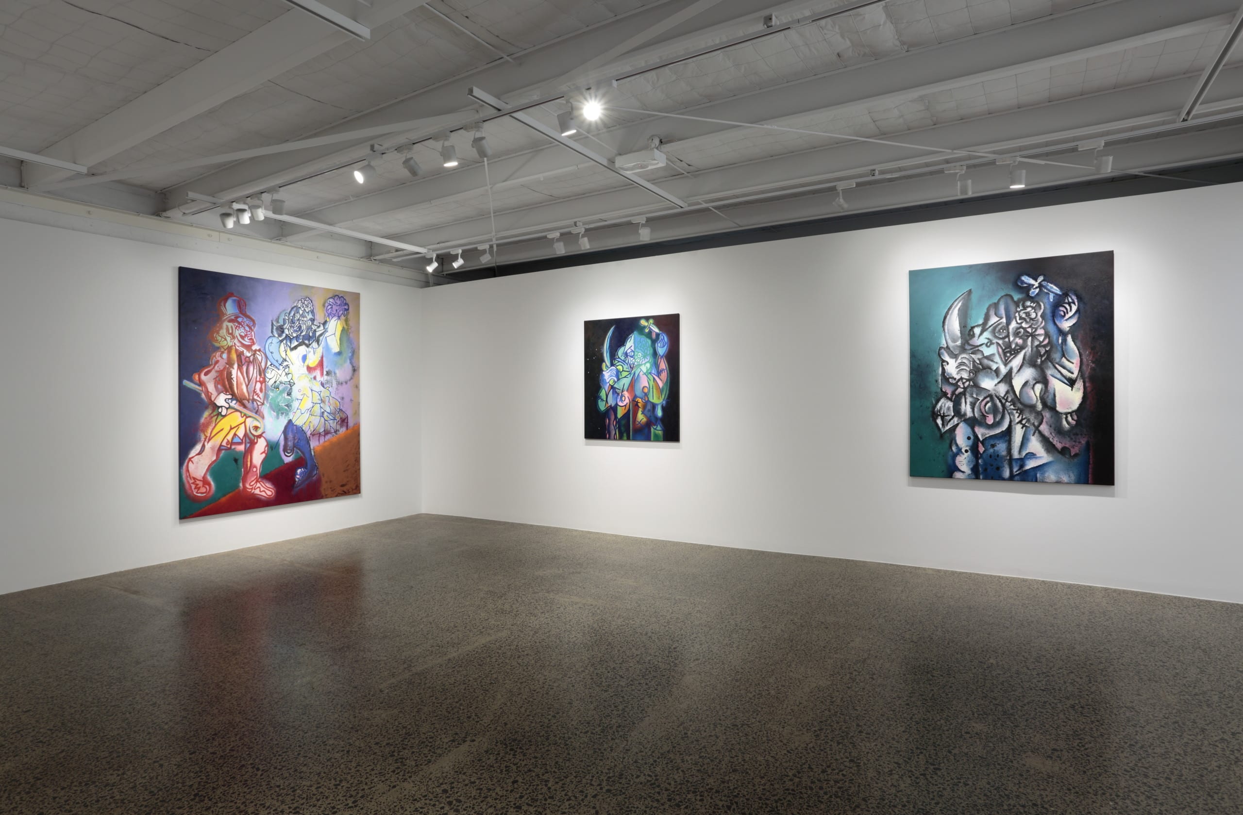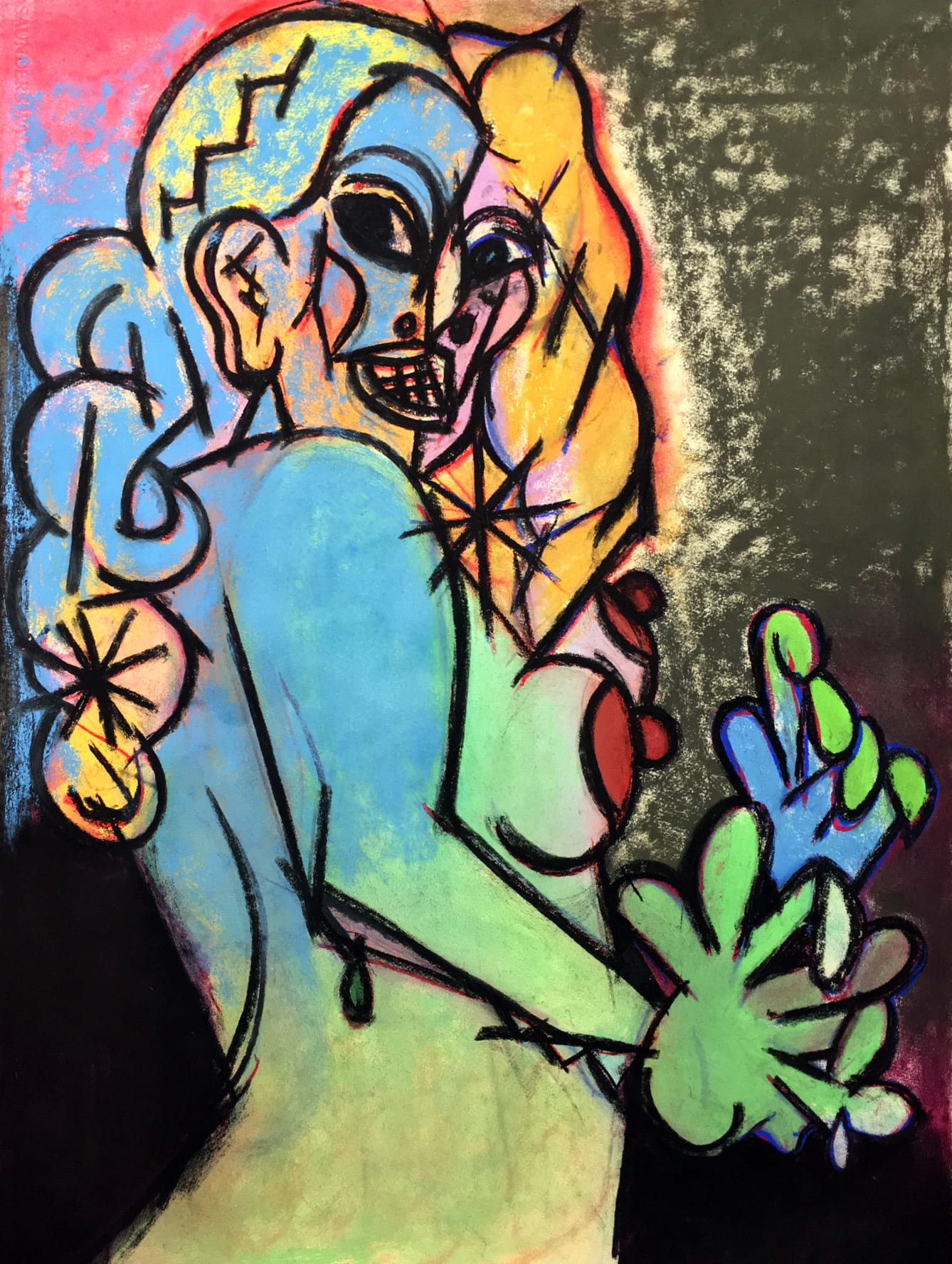 Often experimenting with popular tropes and images the artist enjoys maneuvering recognizable images until they transform into new and unexpected creations, which challenge and entertain as figures dissolve into outline or background. Such inventiveness where color, thickness, or even underscoring of outline creates constant surprise. The artist is currently working towards a January show at Avenue Des Arts in L.A and the rescheduled presentation at the Melbourne Art Fair in February 2021 with Nicholas Thompson Gallery.