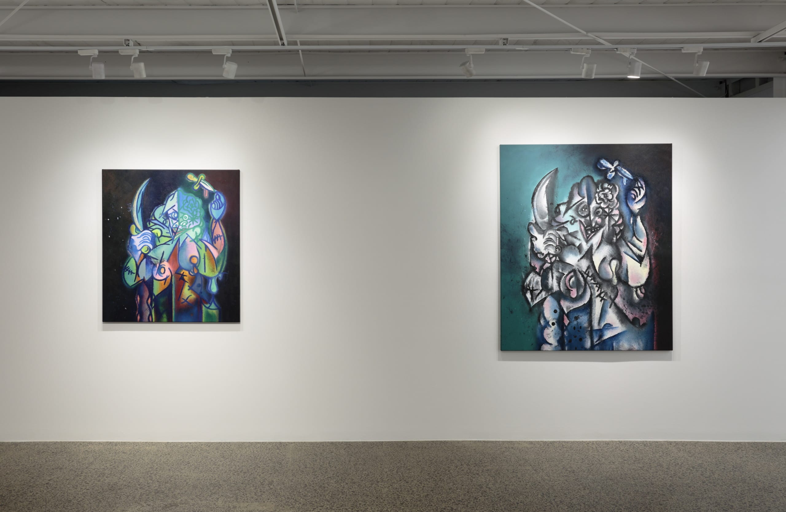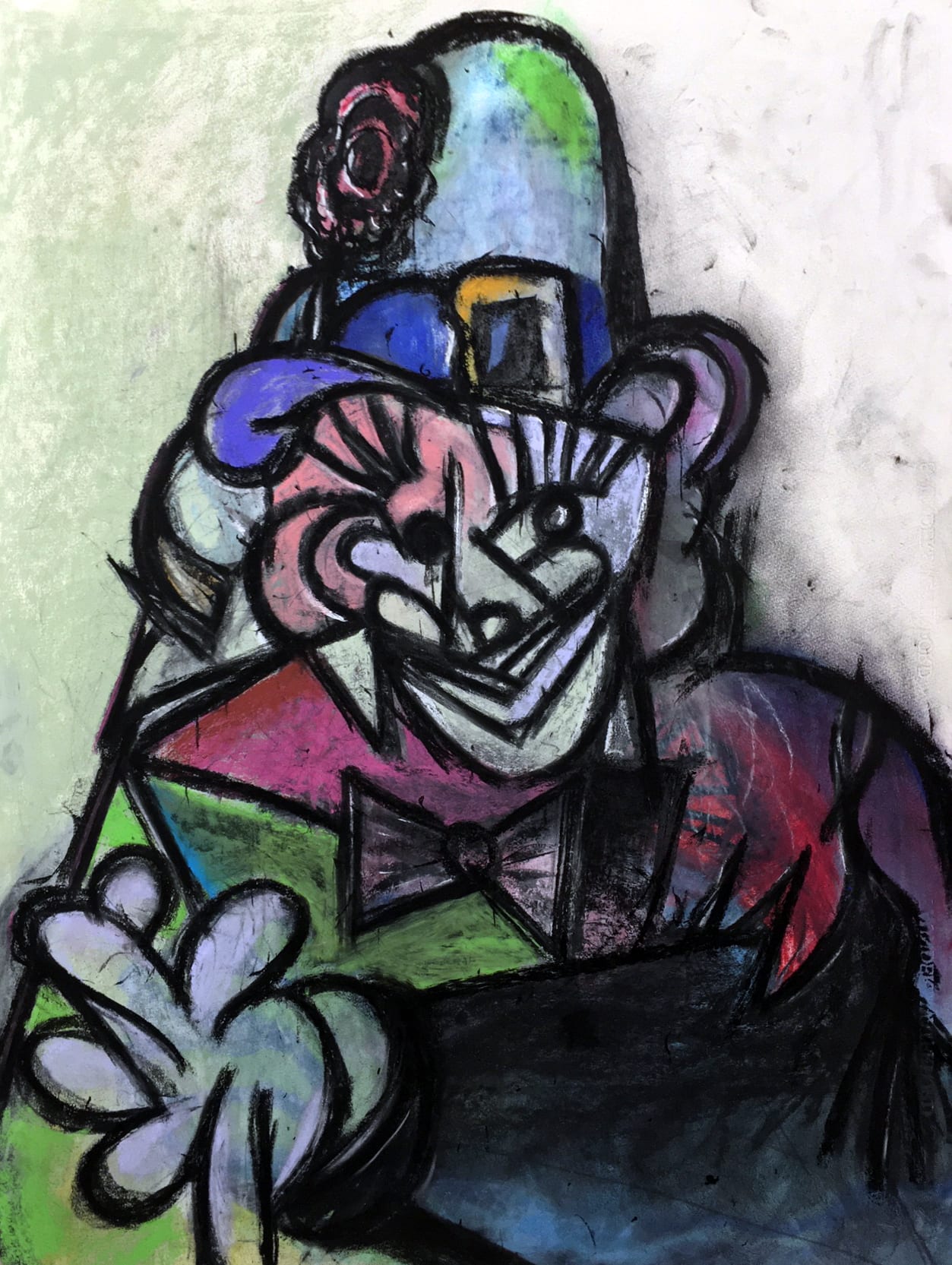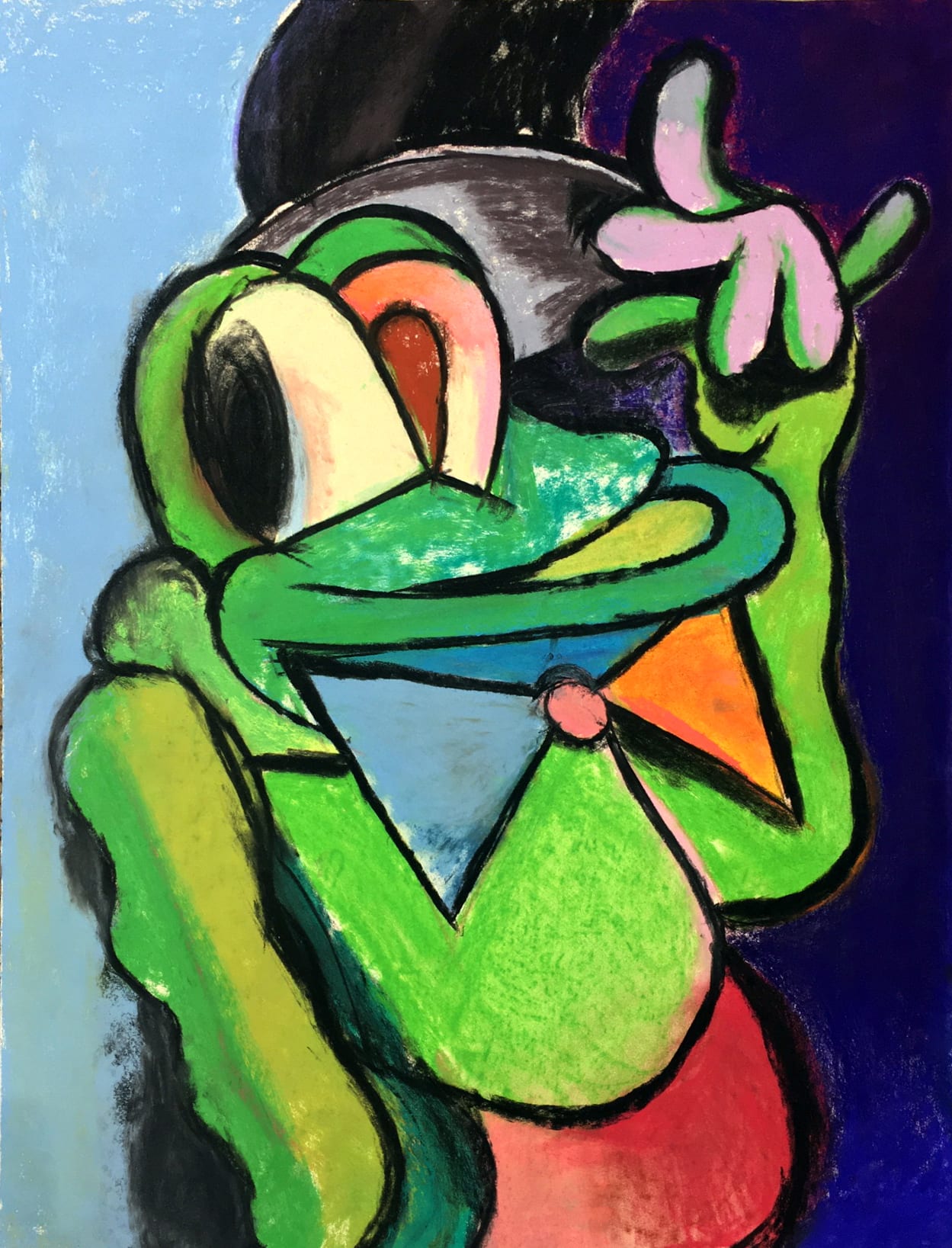 Often experimenting with popular tropes and images the artist enjoys maneuvering recognizable images until they transform into new and unexpected creations, which challenge and entertain as figures dissolve into outline or background. Such inventiveness where color, thickness, or even underscoring of outline creates constant surprise. The artist is currently working towards a January show at Avenue Des Arts in L.A and the rescheduled presentation at the Melbourne Art Fair in February 2021 with Nicholas Thompson Gallery.