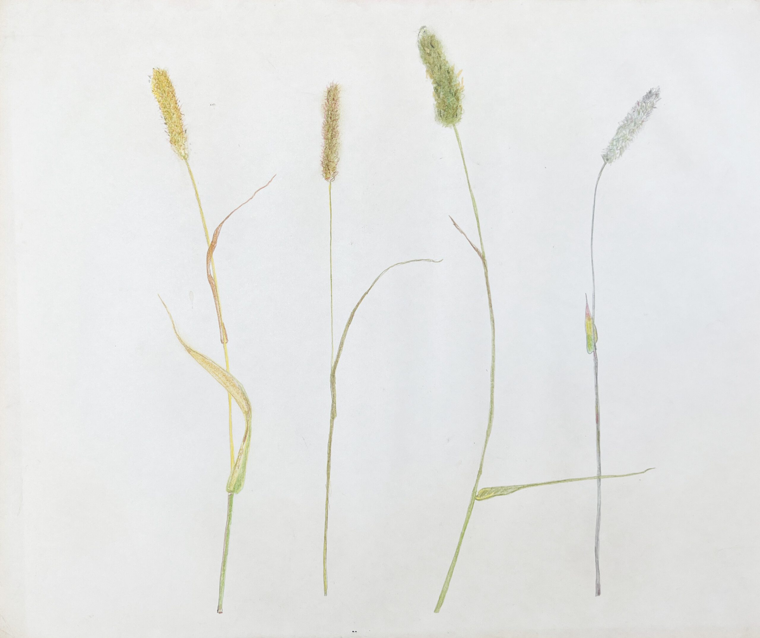 Three events in 1975–76 sparked the second New York series that came to be known as the Skyspace paintings. The first was a month-long MacDowell Colony Fellowship, in the woods of New Hampshire, during which Cuppaidge produced five paintings as well as some crayon drawings of wild grass stems. In the process, she realised the importance of the space in between the grass stems – so much so that ‘the background surface came forward and became the sky’.[3] This in turn prompted the desire to explore ‘an expanse of light opening the surface’.[4] A Guggenheim Foundation Grant, in 1976, enabled her to follow this new direction and focus entirely on her painting for a year without the distractions of gallery work or teaching. And in the same year she purchased a SoHo loft, on the top floor of 66 Grand Street – ‘a narrow but entirely busy street conducting traffic from the Holland Tunnel on the west side of Manhattan to the Williamsburg Bridge’.[5] Living in an area she describes as ‘grimy and noisy’, she ‘decided quiet and tranquil where I lived was essential’.[6]