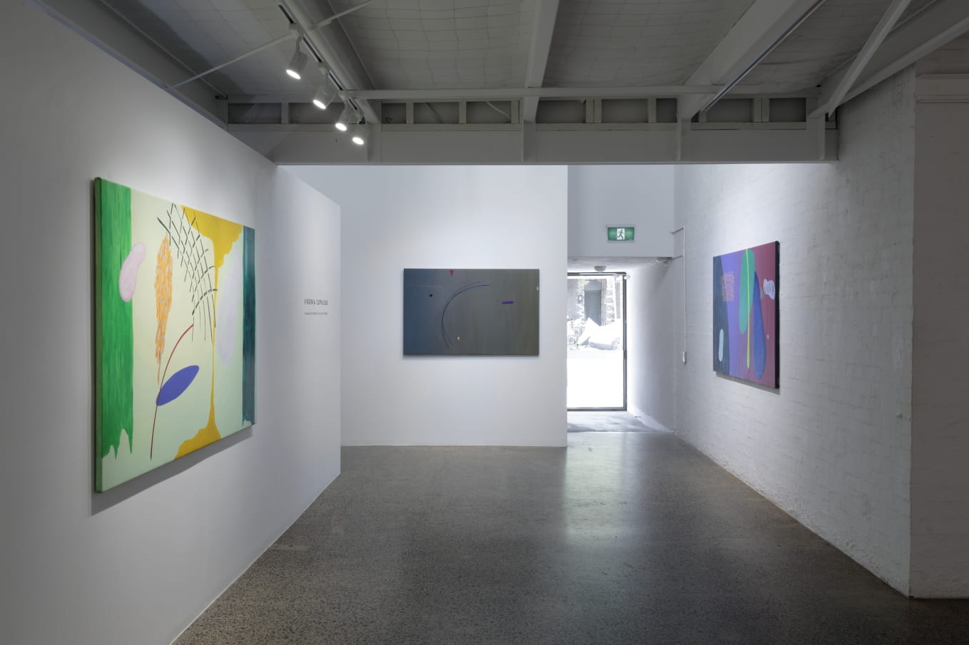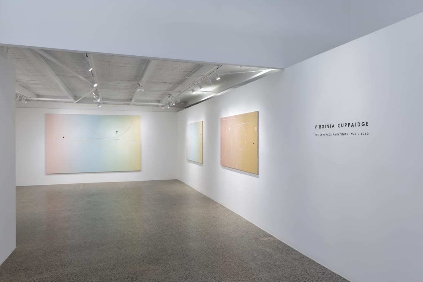 Paintings, like people, change over time, so it is always a fascinating exercise to unfurl canvases kept safely in storage for more than four decades and show them in a fresh light and in a different country to that in which they were conceived. Virginia Cuppaidge’s Skyspace series, from the late 1970s and early 1980s, embodies the opalescent Manhattan sky but is infused with memories of the bleached colours of the Australian landscape. Now, against the cool white of a Collingwood gallery’s walls, they acquire a retrospective aura that permits a new view, across time and place, allowing us to reflect on this short but pivotal phase of Cuppaidge’s work.