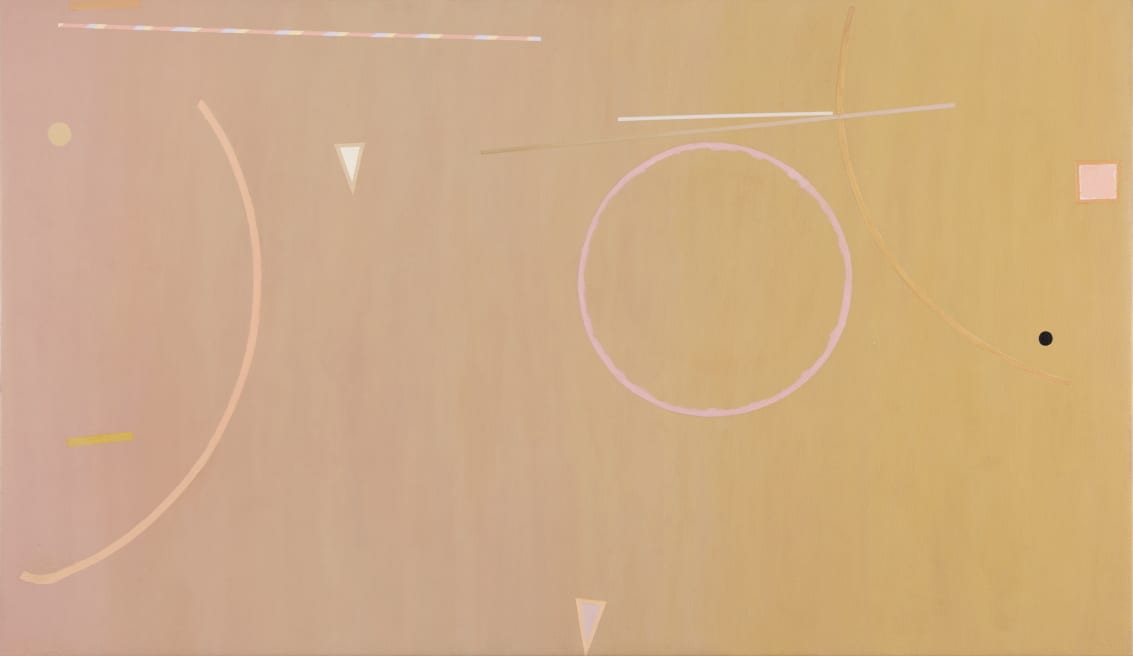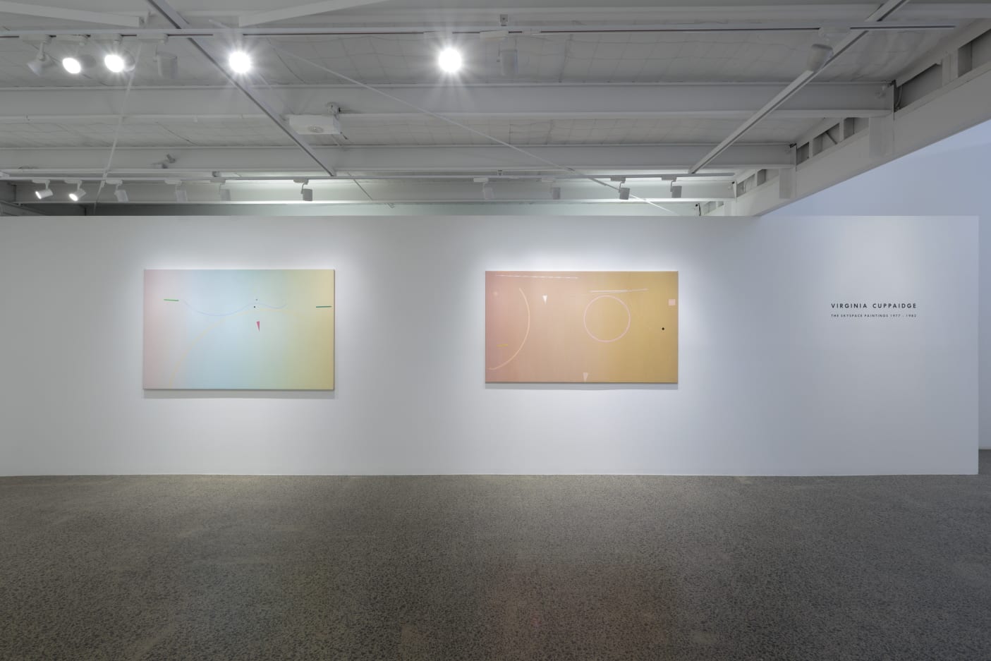 My first encounter with the abstract painting of Virginia Cuppaidge was the unfurling of a three-metre wide canvas titled Lyon in the collection of the National Gallery of Australia. We wanted to include it in a forthcoming display about abstraction, but first it needed to be stretched and considered, having spent much of its life in a New York storage facility before being sent ‘home’ by the artist. It was a revelation. Planes of soft colour partitioned by horizontal beams of more colour – not really a grid, but grid-like - the dissolving intersections of a cityscape that is trying to find open space. When I finally met Virginia on a muggy, close day in Sydney, I understood my initial reaction to the work when she explained to me that Lyon is from her first body of geometric abstractions painted in New York in 1972-73. They started life as a response to her immersion in one of the world’s most coveted concrete jungles, thus they were about the skyscrapers and the topography of streets that go on in a seemingly never-ending street map that is New York City. But then, Virginia’s subconscious started to seep through and an echo of the wide, open landscapes of Australia began to paint its way into the scene.