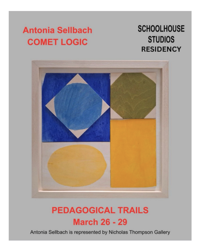 Schoolhouse Studios is proud to present ‘Comet Logic: Pedagogical Trails’, a new body of work by Antonia Sellbach. The artworks in the exhibition ‘Comet Logic: Pedagogical Trails’ were developed during a three-month residency at Schoolhouse Studios, Coburg (January–March 2026). As I worked, emergent and recurring forms persisted: circular, globular shapes initially resembling rocks, stars, planets, eyes, eggs, or cells. Through the repeated depiction of these forms, further observations began to surface. Many shared a similar internal structure: a dense nucleus surrounded by halos, or comas. I began to consider how the inner mechanics of a comet might echo the forms…