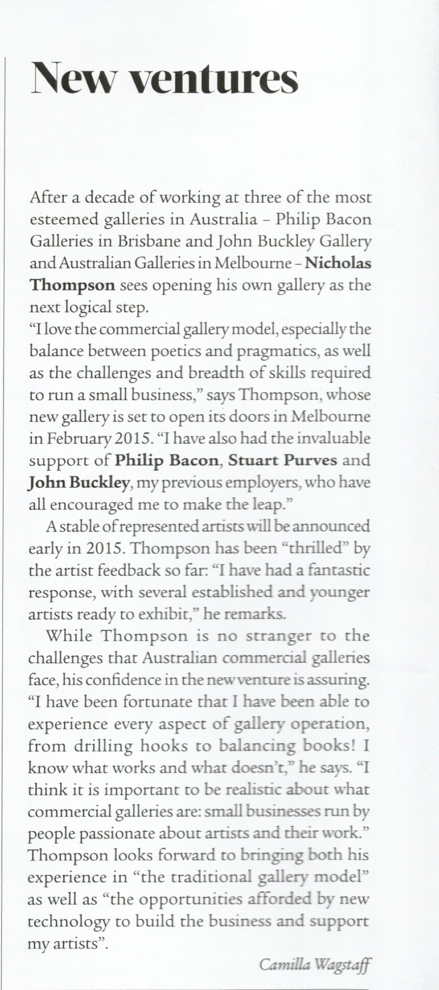 GALLERY IN ART COLLECTOR MAGAZINE By Nicholas Thompson | February 8, 2015 | Comments Off on GALLERY IN ART COLLECTOR MAGAZINE Column in Jan 2015 issue on the opening of the gallery. Posted in Uncategorized